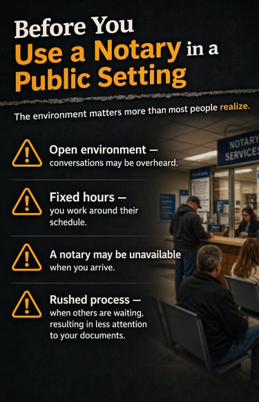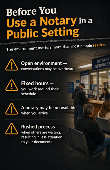 Banks and Credit Unions Most major Michigan banks offer free notarization for account holders. It sounds convenient until you're standing at a counter in an open lobby, discussing a power of attorney or medical directive loud enough for the teller and the three people behind you to hear every word. Hours are limited, the notary may be unavailable, and non-customers are often turned away entirely.